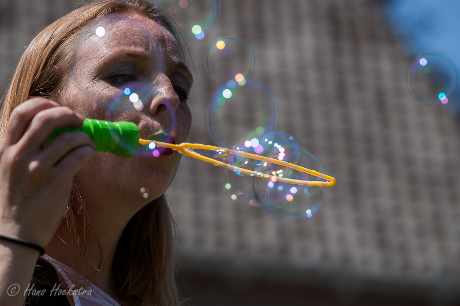 Op het fotofestival heb ik oa. de workshop Evenementenfotografie van Remco van der Kruis gevolgd. Na een korte inleiding met voorbeelden van zijn werk en hoe hij te werk gaat, konden we zelf gaan oefenen bij de optredens van het Maggie V trio (vandaag als duo) en een drietal dames die met zeepbellen in de weer waren.