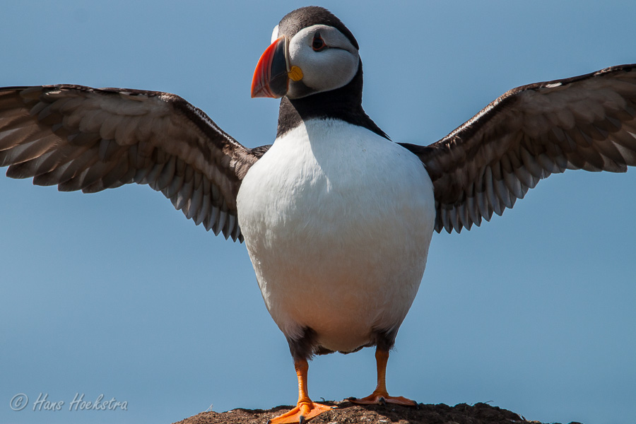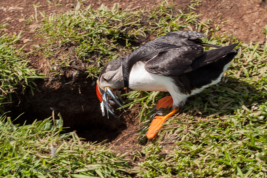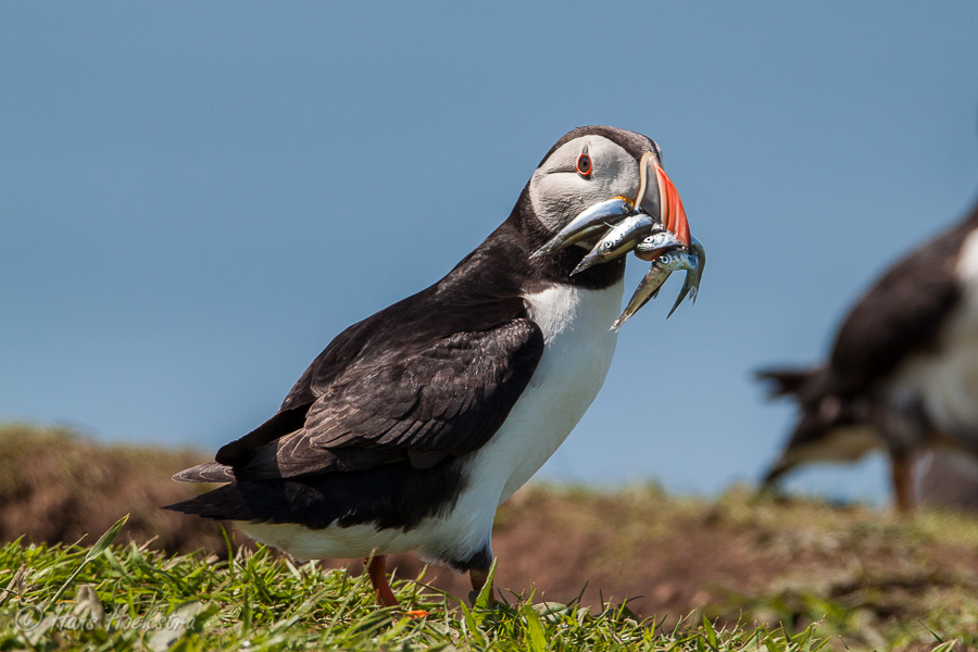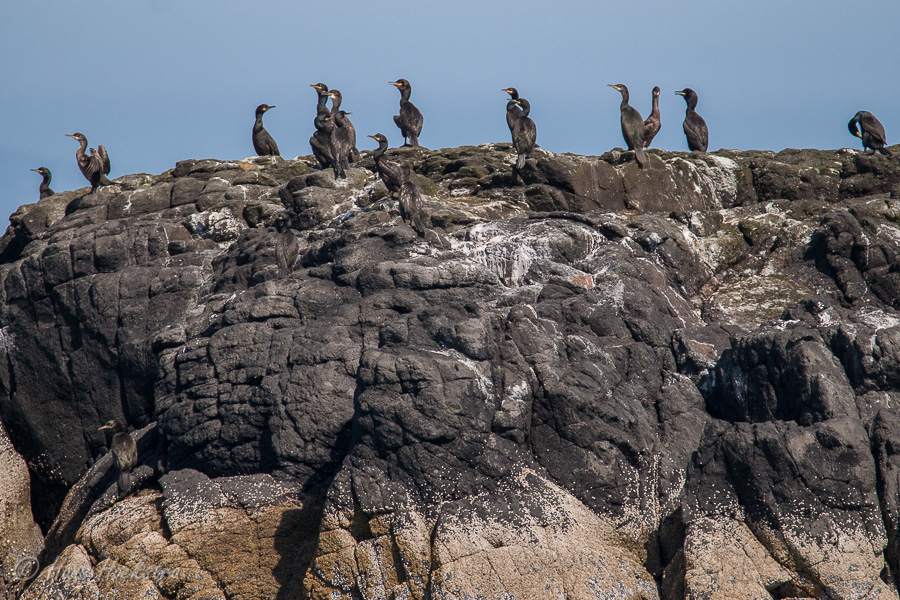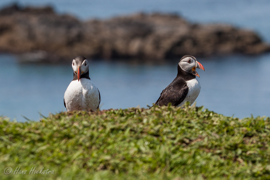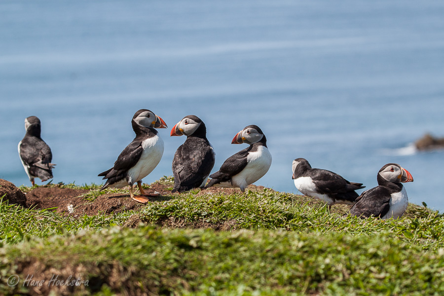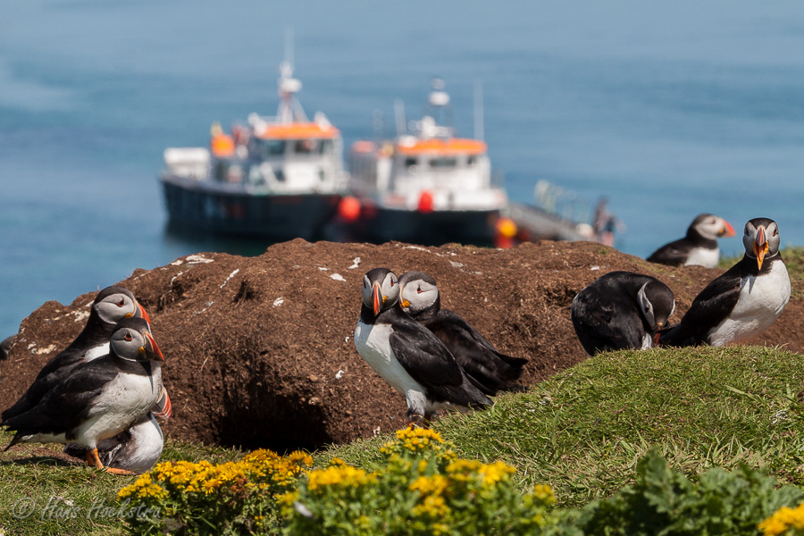 Met zo’n 55 passagiers vertrokken we vanuit Tobermory om eerst in Kilchoan nog een gezin op te pikken. Na een uurtje op zee, kwamen we bij de Treshnish isles. Eerst zagen we nog een grote zeehonden kolonie en toen kwamen aan bij Lunga. Even klauteren over de grote rotsen op het strand en toen naar de Puffins. Wat zijn dat leuke vogels, een beetje een kruising tussen een pinguin en een papegaai. Omdat ze geen natuurlijke vijanden hebben op de eilanden, behalve de meeuwen, zijn ze erg tam en makkelijk benaderbaar. We hebben dan ook 2 uur lang genoten van deze diertjes en het fantastische uitzicht.