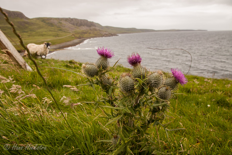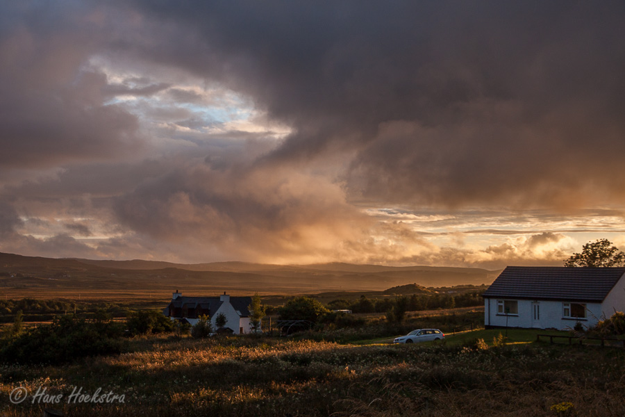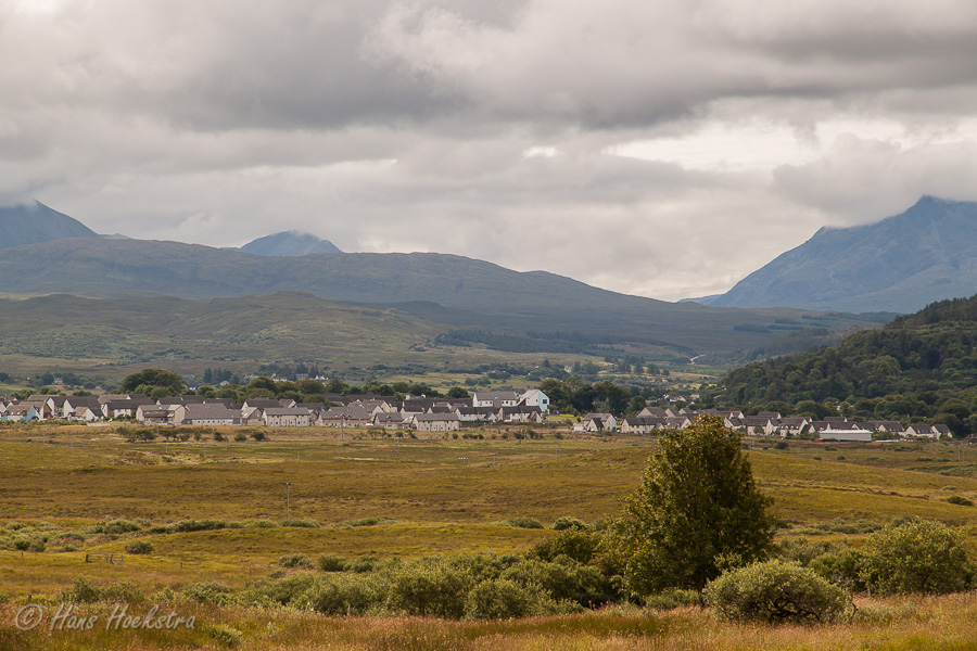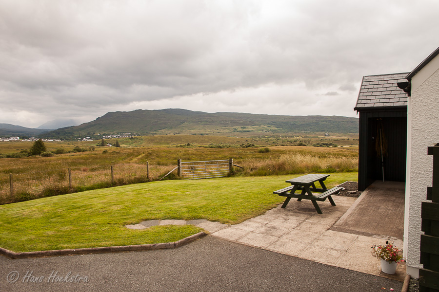 De tweede week van onze vakantie hebben we op Skye doorgebracht. We hadden een huisje gehuurd in het gehucht Achachork, net ten noorden van Portree. Achachork is niet meer dan een doodlopende straat met een twintigtal huizen, waarvan een deel B&B of vakantie cottage. Vanuit het huisje had je vrij uitzicht over de velden op de buitenwijk van Portree en de verderop liggende bergen. Ook was er genoeg “wild life” in de tuin aanwezig.