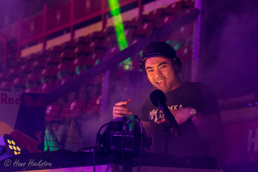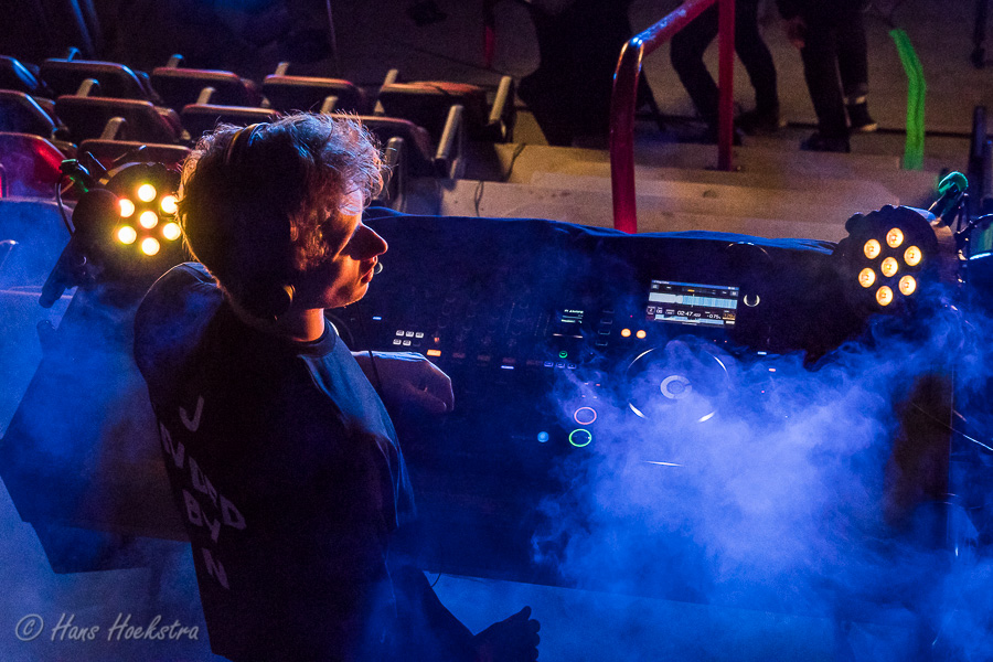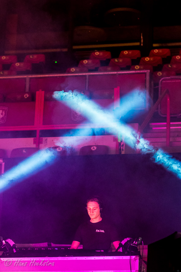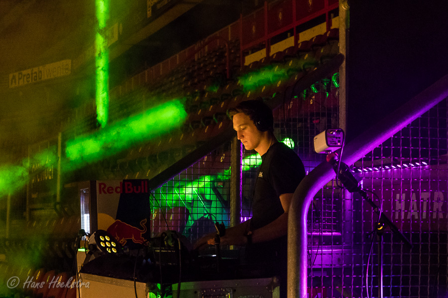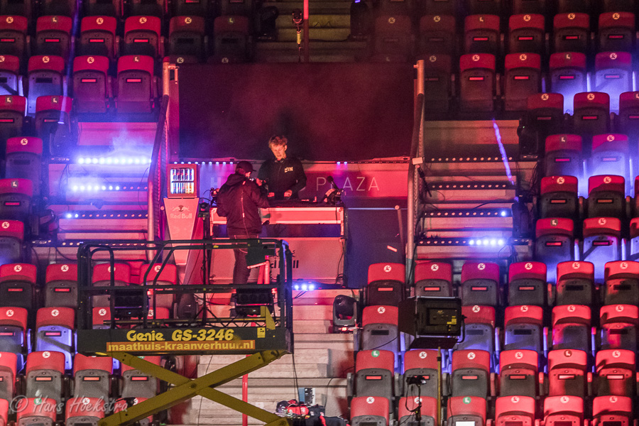 De DJ-booth was opgesteld op de tribunes, om foto’s te maken een hele uitdaging omdat je zoveel hoogteverschil hebt. Ook moest ik continue rekening houden dat ik niet in de weg liep van de camera’s voor de live stream.