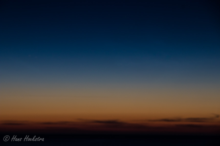 Omdat er meldingen waren over Zeevonk zijn we een paar keer om middernacht naar het strand gegaan. Helaas geen Zeevonk gezien, maar op woensdag wel een heldere sterrenhemel met aan de de westelijk horizon een kleurrijk spektakel.