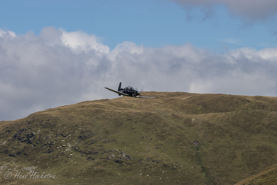 In onze vakantie in Wales heb ik 1 dag iets heel anders gedaan dan het geijkte toeristische. Ik had met Peter afgesproken om een dag vliegtuigen te gaan fotograferen in de Mach loop. Dit is een laagvlieg trainingsgebied waar je vanaf de heuvels de straaljagers op ooghoogte voorbij ziet komen. Er is geen garantie op vliegtuigen en je weet ook niet wat er komt en wanneer, dus is het een kweste van vroeg komen en geduldig wachten. Toen ik om half acht aankwam was de parkeerplaats al bijna helemaal vol en na een half uurtje klimmen kwamen we op onze uitkijkplek aan. Pas tegen 11 uur kwamen er een paar Typhoons voorbij vliegen en toen was het weer wachten tot 14 uur. Toen werd het even druk met oa Texans, Hawks, F35’s en een Red Arrow. En tijdens het wachten hebben we maar wat andere vliegend spul geschoten.
