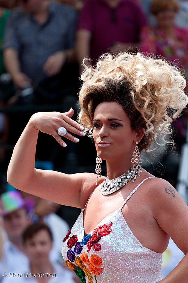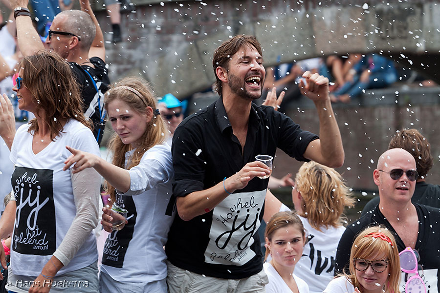 De jaarlijkse Canal parade tijdens de Gay pride in Amsterdam is een kleurrijke optocht door de Amsterdamse grachten, waar honderdduizenden toeschouwers naar komen kijken. Gelukkig stonden er fietsen gestald tegen een lantaarnpaal, zodat ik daarop een mooie hoge positie voor vrij uitzicht kon kiezen 😉