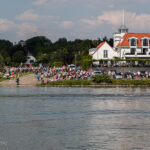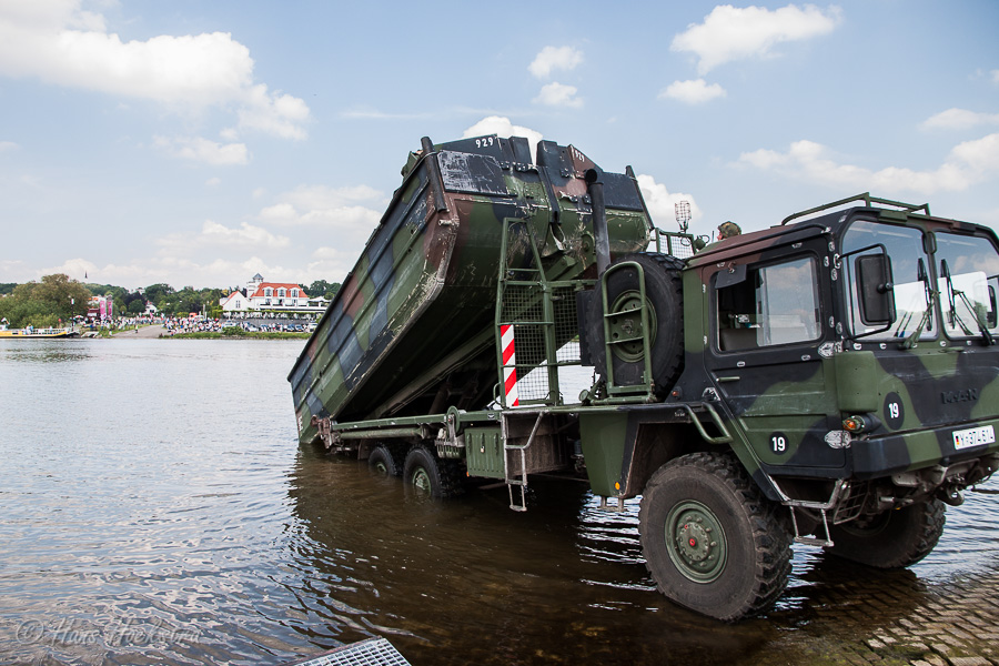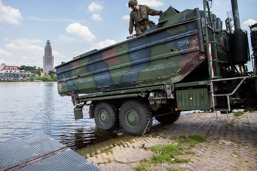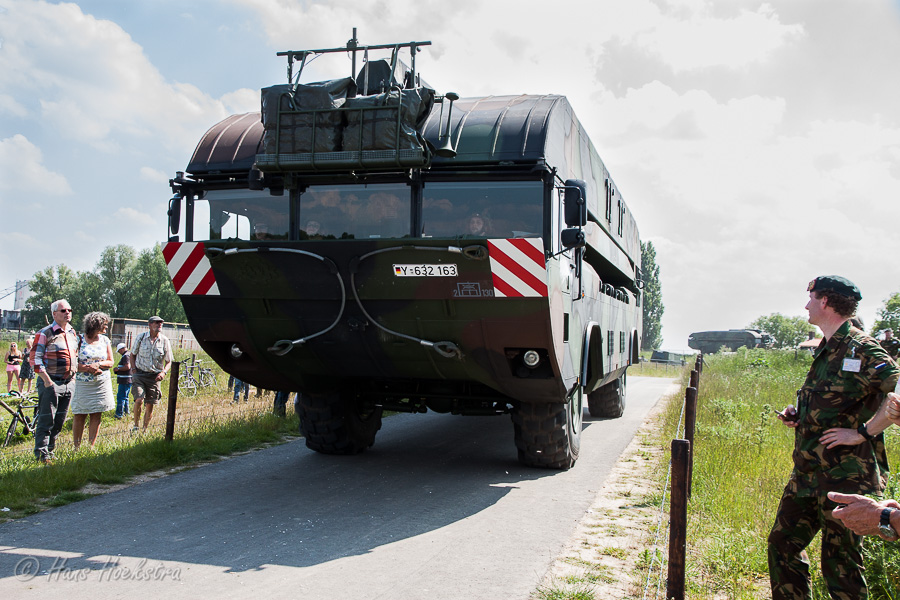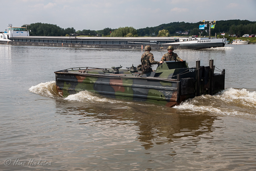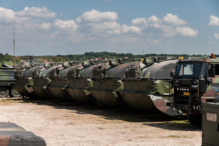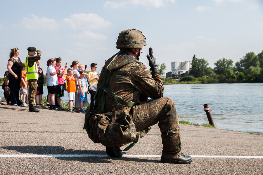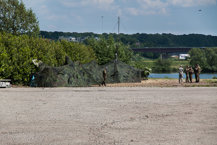 Deze oefening trok vooral aan de Rhenense kant veel bekijks, maar ook aan de Betuwse kant was genoeg publiek om het te water laten van de pontons te aanschouwen.