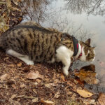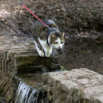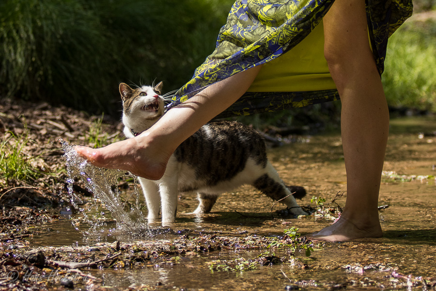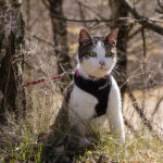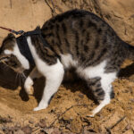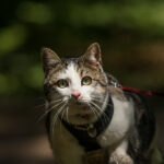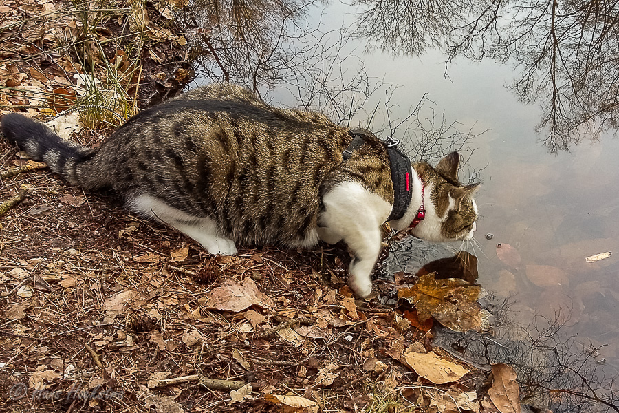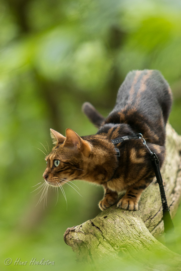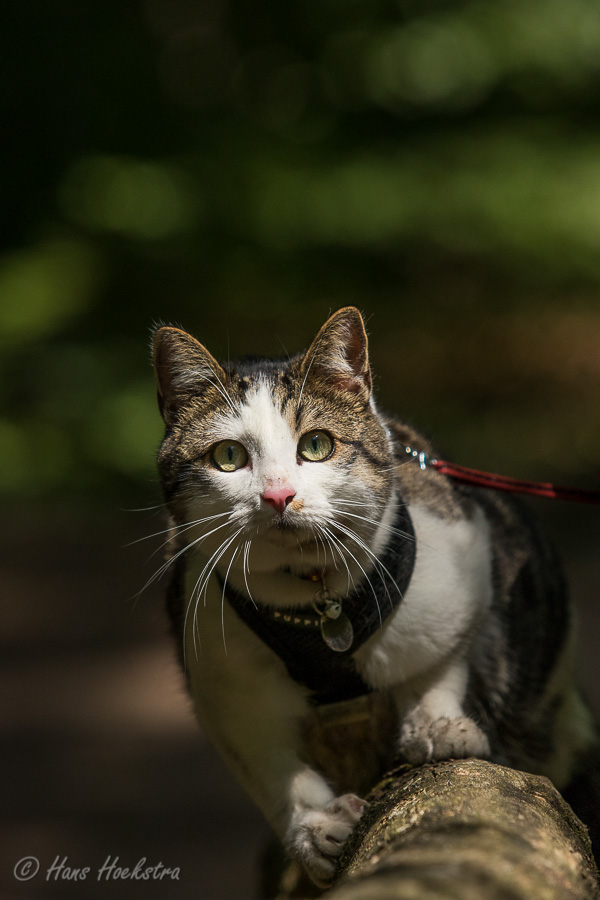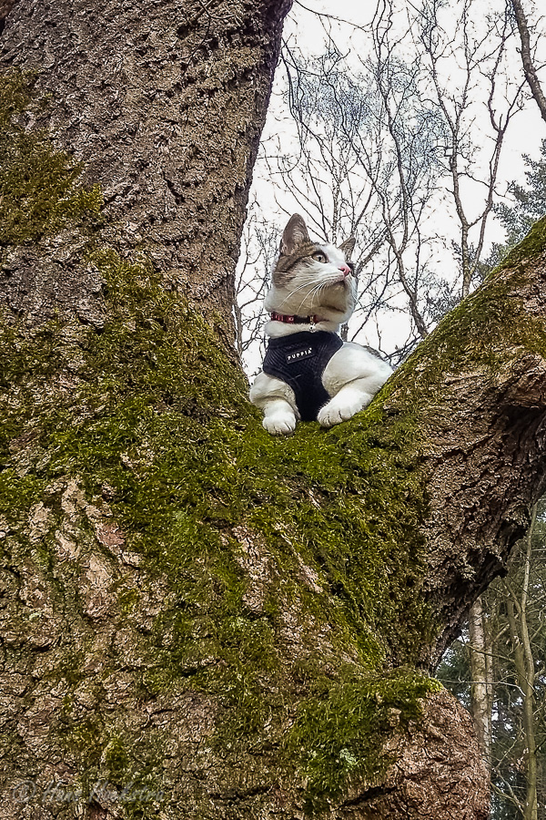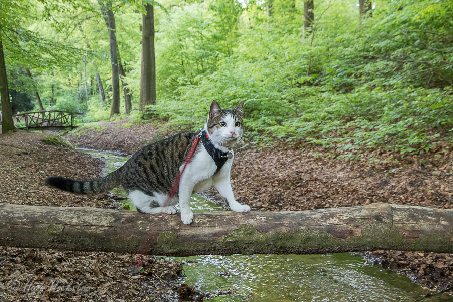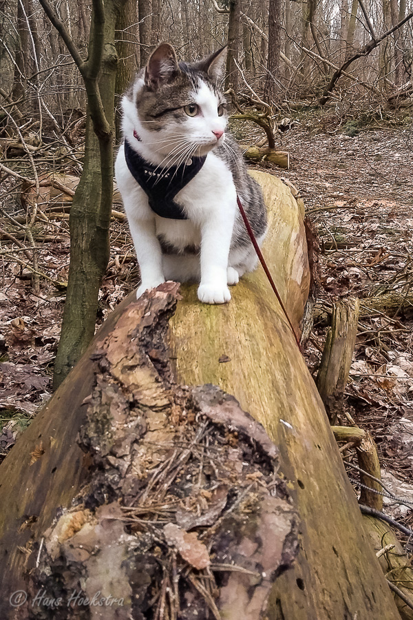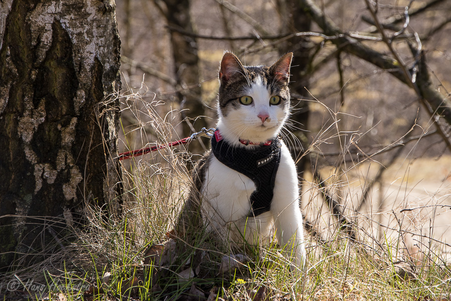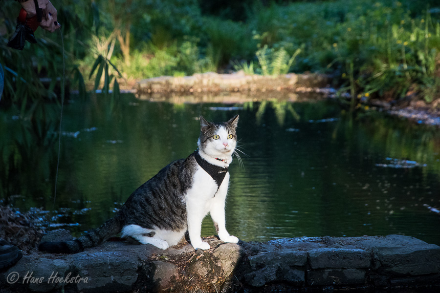 Omdat je een jonge kat nog alles kan leren hebben we besloten hem te trainen om aan een lijn te lopen zodat hij mee kan naar buiten. In eerste instantie is “buiten” alleen de achtertuin, maar met de aanschaf van een rugzak kon hij ook mee naar het bos. In het begin was hij weliswaar voorzichtig maar vooral ook erg nieuwsgierig. Zo hebben we steeds een stapje verder gezet. Naar het strandje bij de Rijn, de Leemkuil, de kleibult op Kwintelooijen en naar het beekdal bij Oosterbeek. Munro is nu zo vertrouwd aan het lopen aan de lijn (en vindt autorijden ook erg leuk) dus hebben we besloten hem mee te nemen op onze vakantie naar Schotland.
