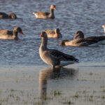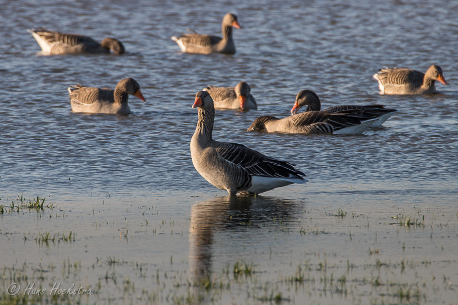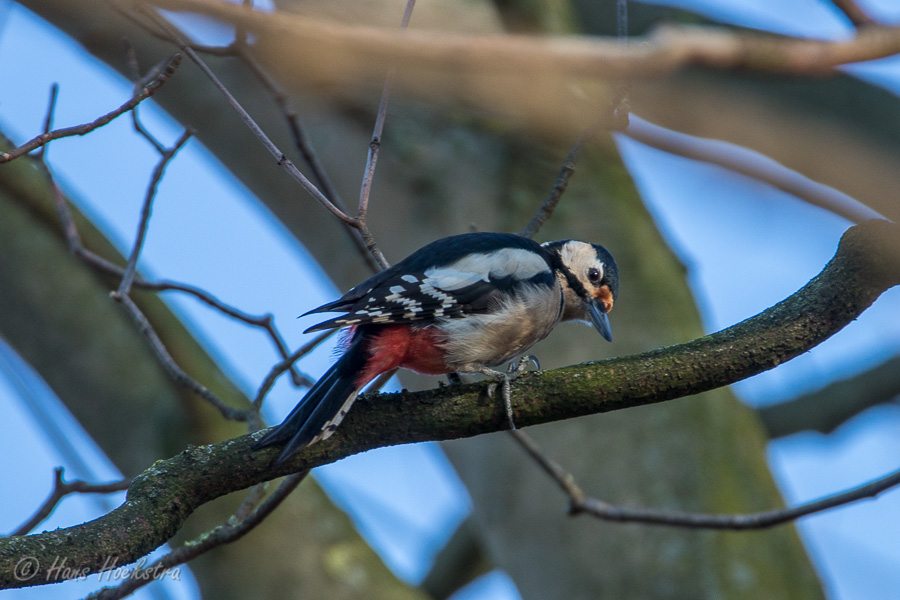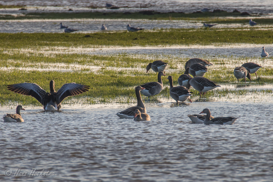 Lopend langs de Rijndijk richting Grebbeberg zie je dat de Rijn al tot aan de zomerdijk staat en op de weinige stukken overgebleven grasland zitten dan ook vele ganzen noodgedwongen bij elkaar. Ook de Koolmezen genieten van het aangeboden voer. Op de Grebbeberg is het zoals altijd vrij rustig met dieren, maar als je goed kijkt zie je zowaar een Roodborstje en een Grote bonte specht.