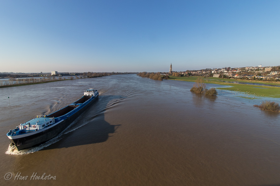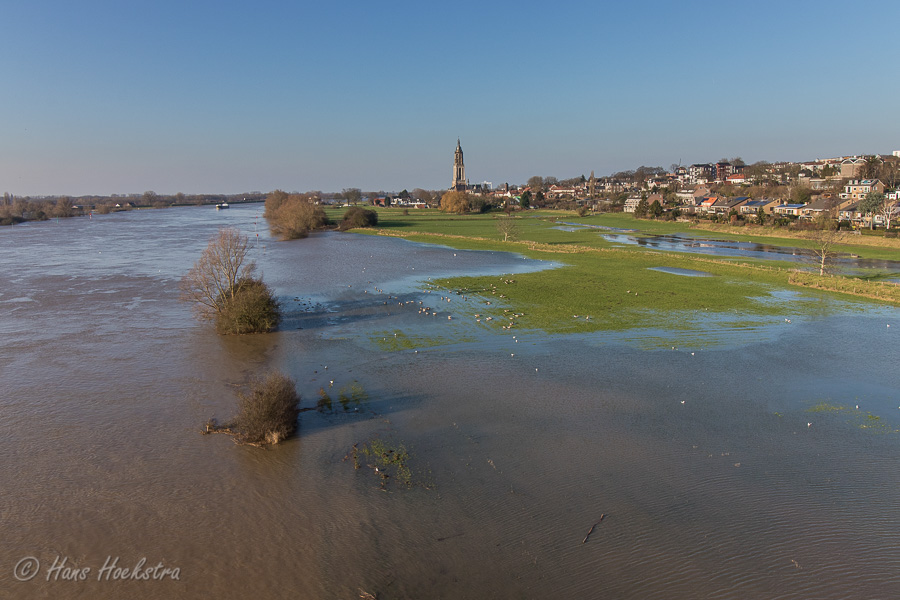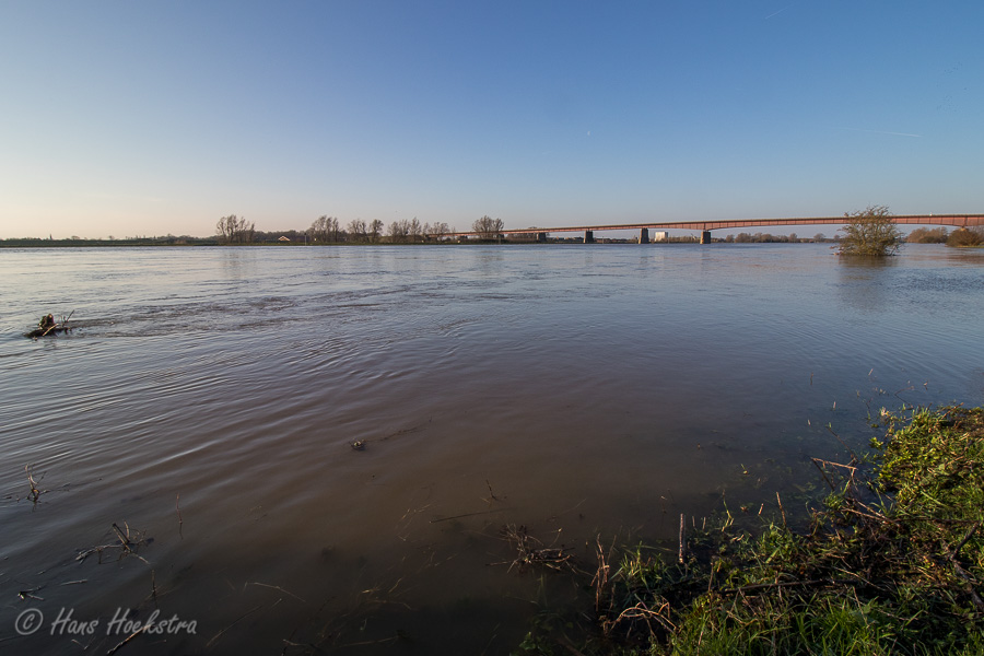 Al enige dagen is het waterpeil van de Rijn aan het stijgen en in combinatie met een zonnige maandagmorgen, is dit een mooie gelegenheid voor een lange wandeling -met camera- langs de Rijn. Ik ben gestart bij de Palmerswaard die nu bijna volledig onder water staat en dus worden de Konikpaarden op de hoge grond bijgevoerd.