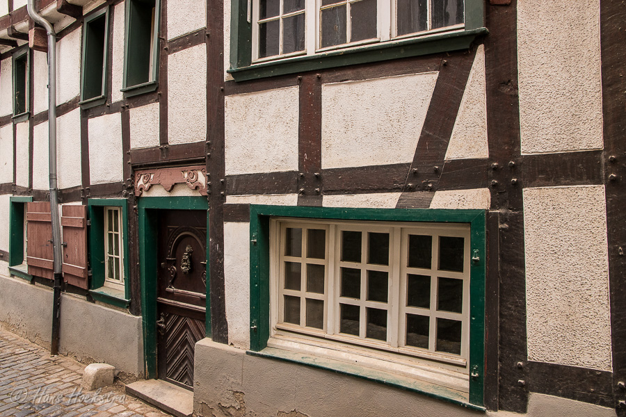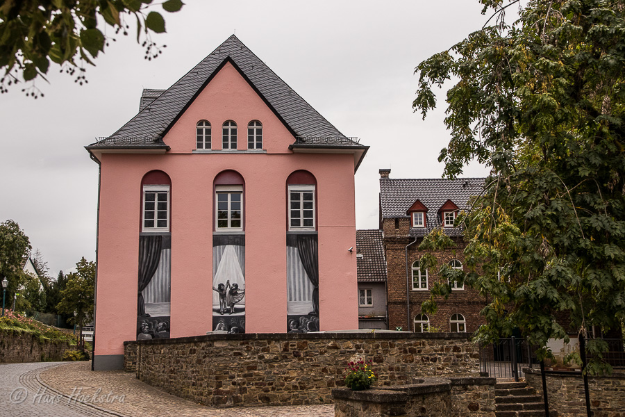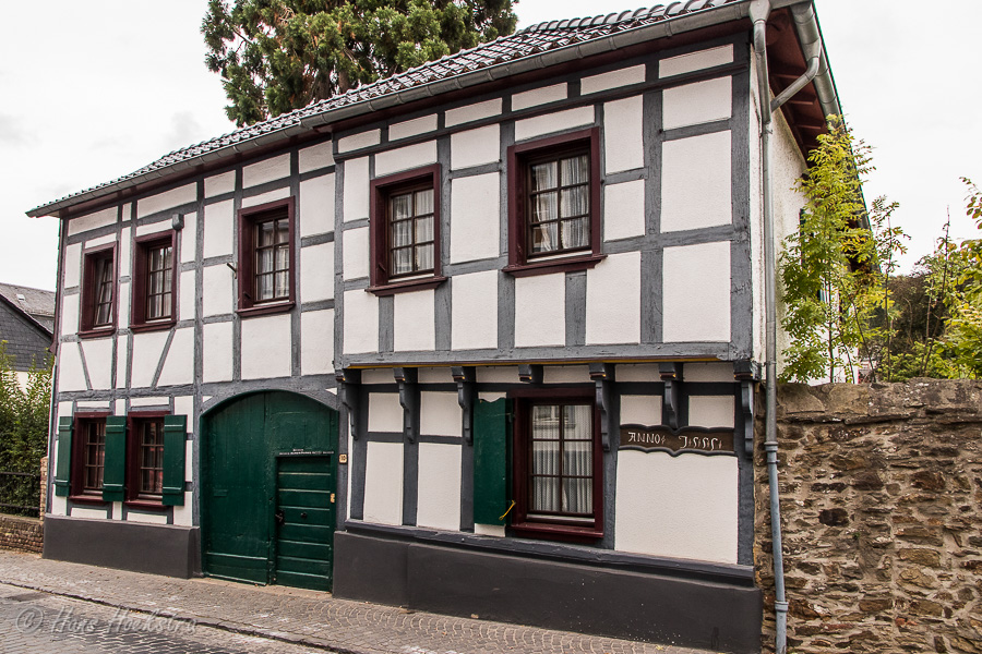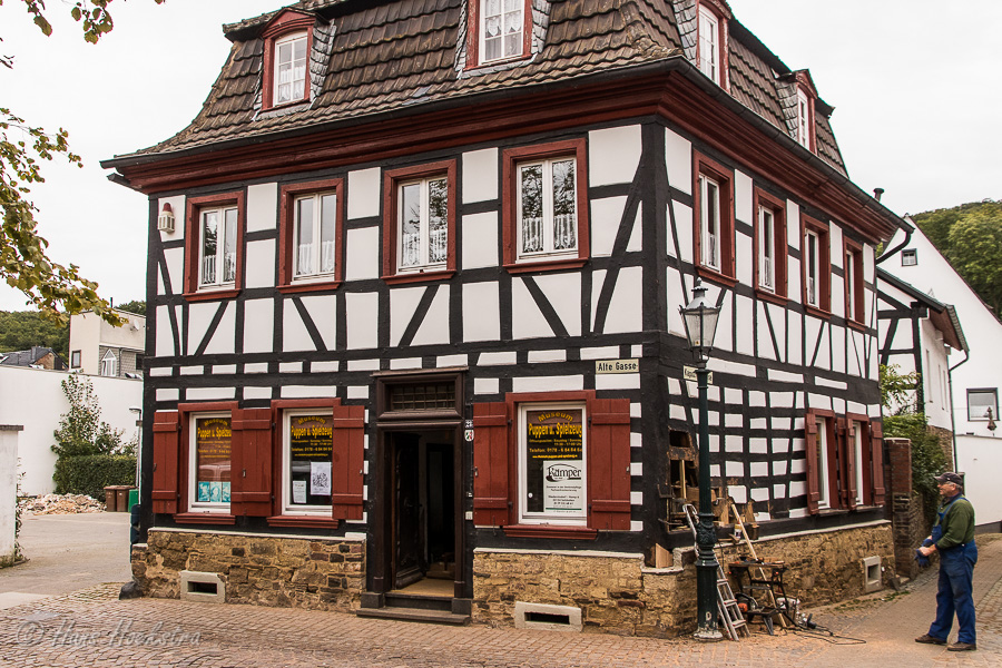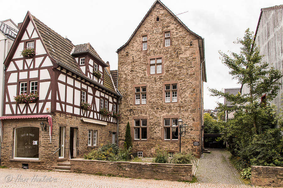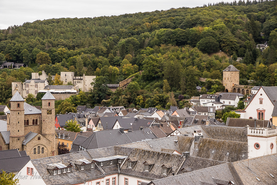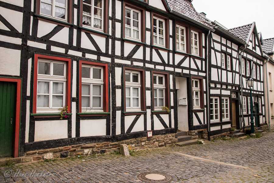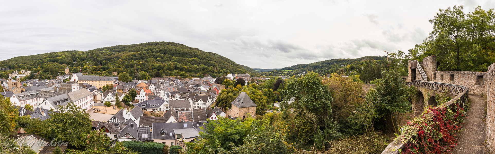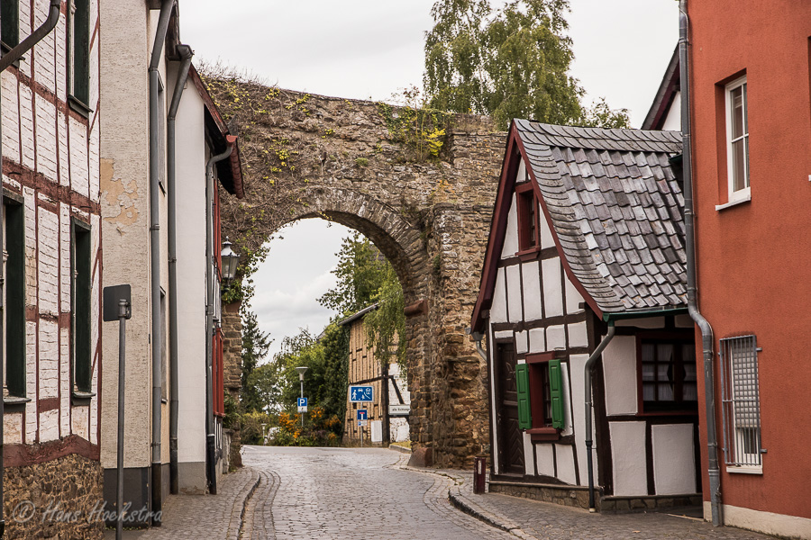 Bad Munstereifel is een middeleeuwse stadje met mooie gebouwen en een vele outlet winkels. Helaas is het zwaar getroffen door de overstromingen in juli. Omdat de rivier de Erft door de binnenstad stroomt, zijn alle winkels aan weerszijden van de rivier verwoest. Toen wij er in september waren, werd er nog steeds hard gewerkt aan het drogen en het herstellen van de schade. Omdat het veelal vakwerkhuizen zijn, is de schade groot omdat deze gebouwen niet gebouwd zijn van steen, maar van houten balken, opgevuld met vlechtwerk en leem.
