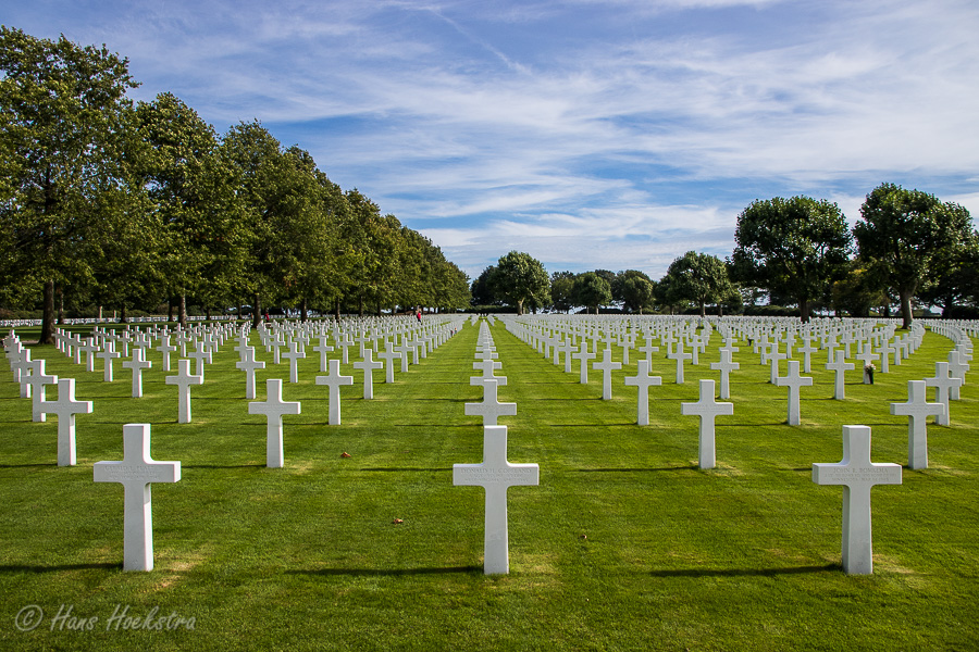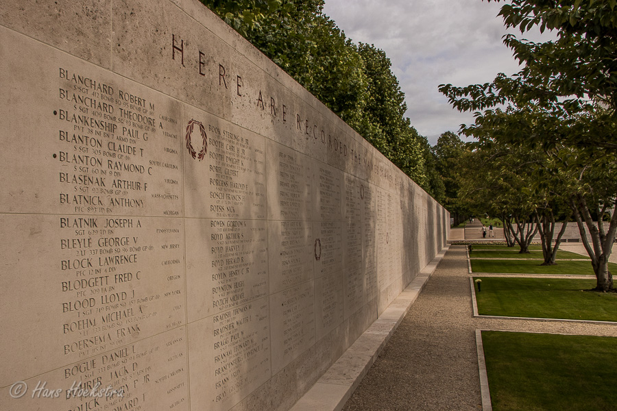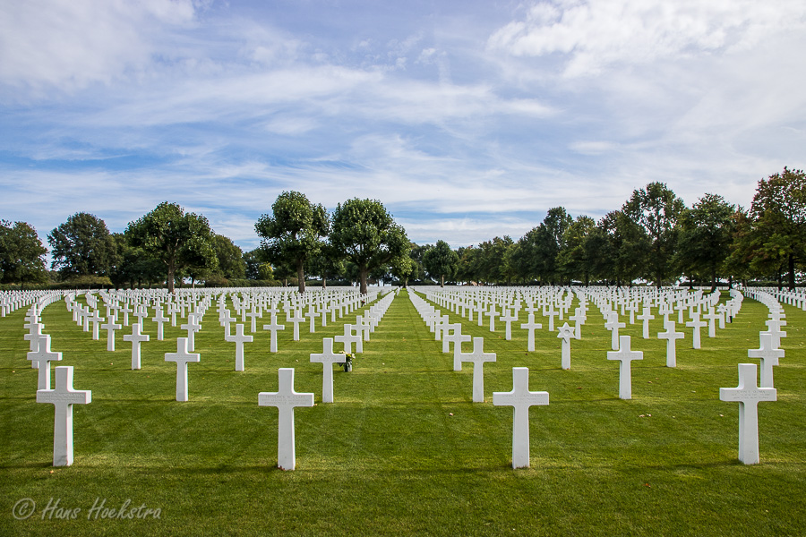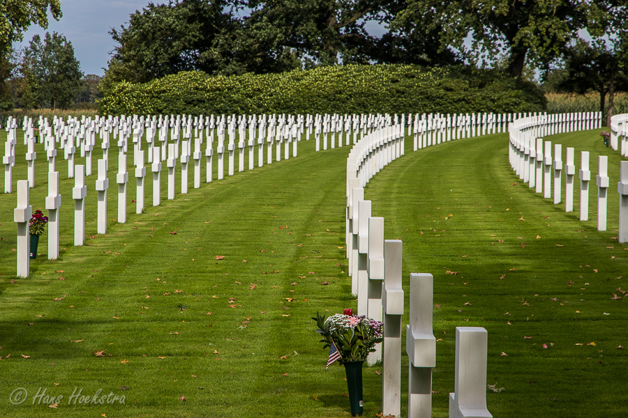 Op de thuisreis vanuit de Eifel, zijn we gestopt bij het militair ereveld in Margraten. Dit is een Amerikaanse begraafplaats op Nederlands grondgebied (voor eeuwigdurend gebruik beschikbaar gesteld aan de regering van de Verenigde Staten van Amerika). Hier zijn ruim 8000 militairen begraven, die zijn gesneuveld tijdens de bevrijding van het zuid-oosten van Nederland in de 2e wereldoorlog. Naast de ruim 8000 graven, staan op het voorterrein ook nog de namen van zo’n 1700 vermiste militairen op de muren vermeld. Sommige zijn later alsnog gevonden of geïdentificeerd en zijn gemerkt met een rozet.