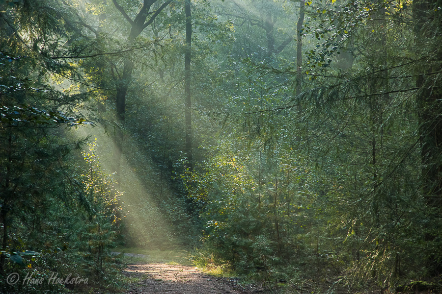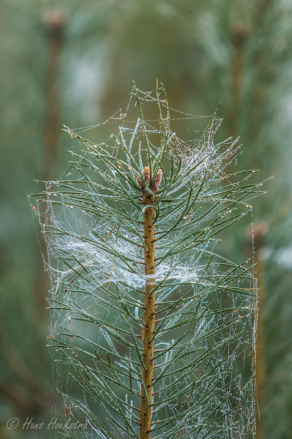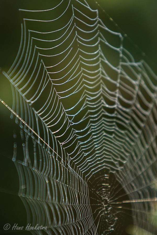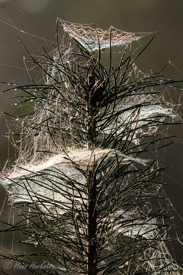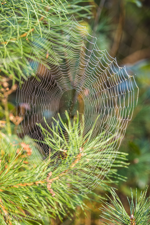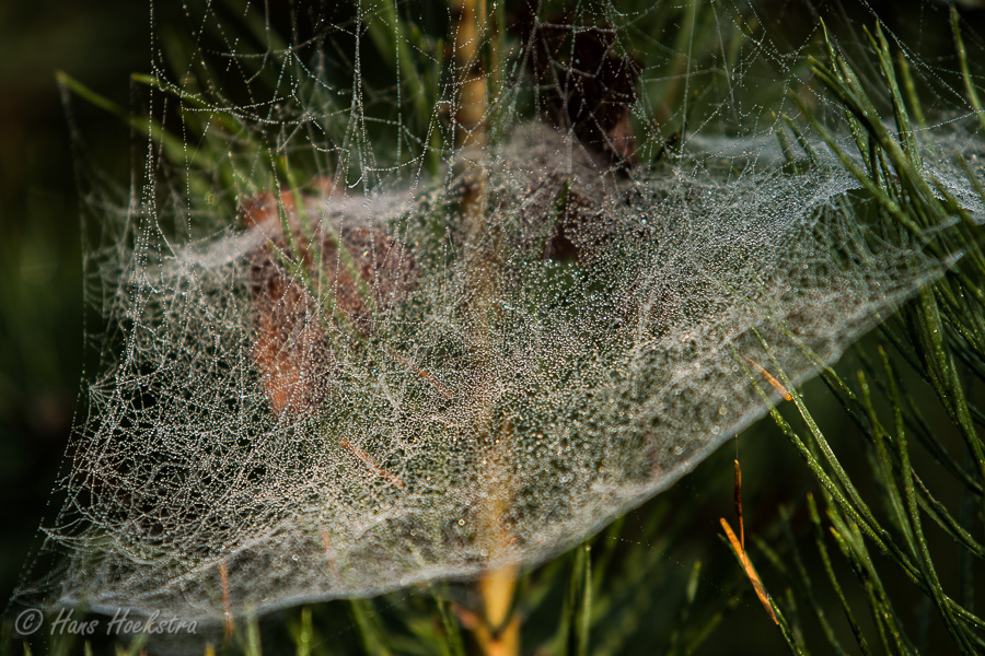 Op een mooie zaterdagochtend herfstfoto’s maken in het bos met dauw op de spinnenwebben en mooie zonneharpen.