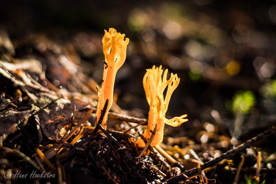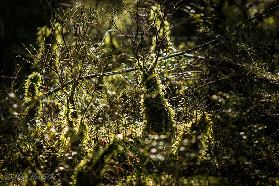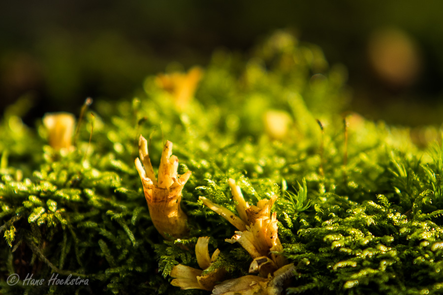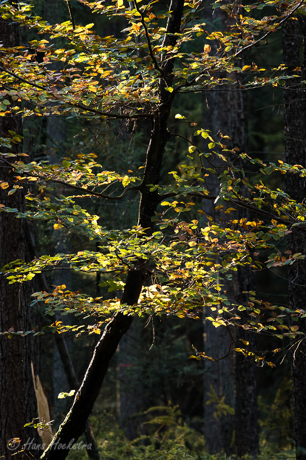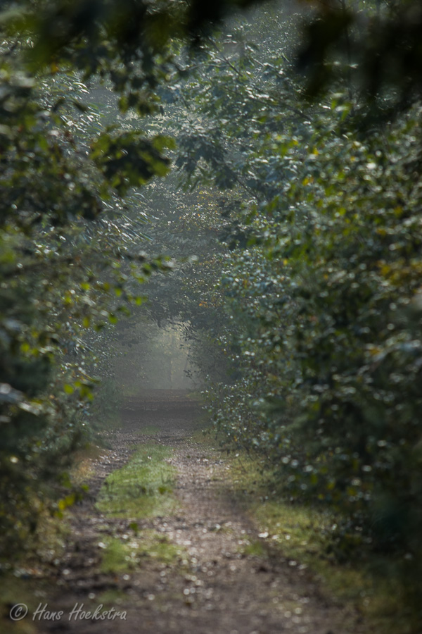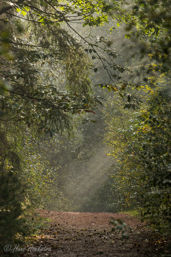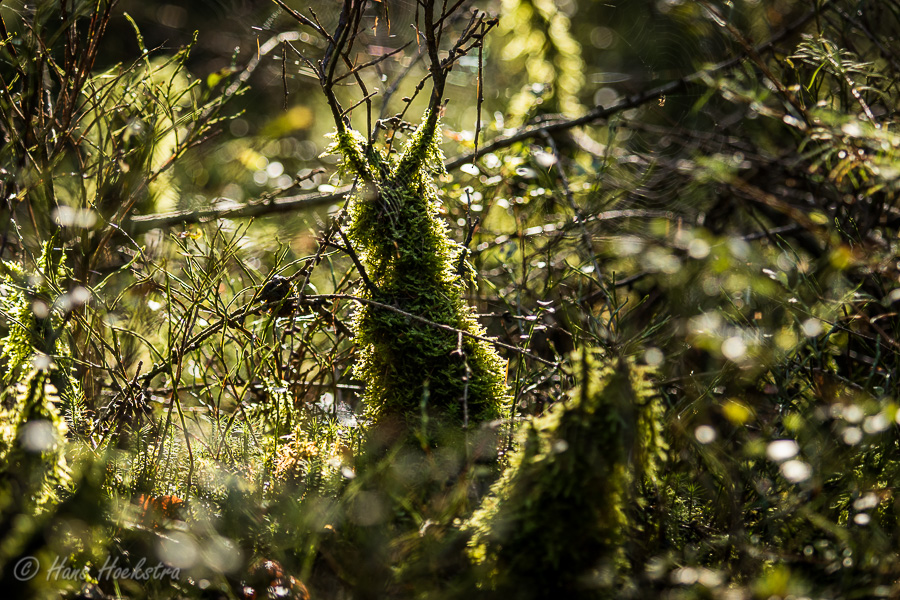 Op een mooie zaterdagochtend herfstfoto’s maken in het bos met dauw op de spinnenwebben en mooie zonneharpen.