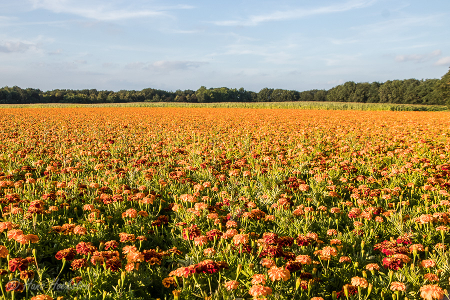 Op een mooie zondagmiddag in augustus hebben we een wandeling gemaakt bij het Reindersmeer in het Nationaal park de Maasduinen. De heide was al aan het bloeien en de blauwe juffers dansden boven het water. Op de weg naar huis reden we langs een groot veld vol met Afrikaantjes.