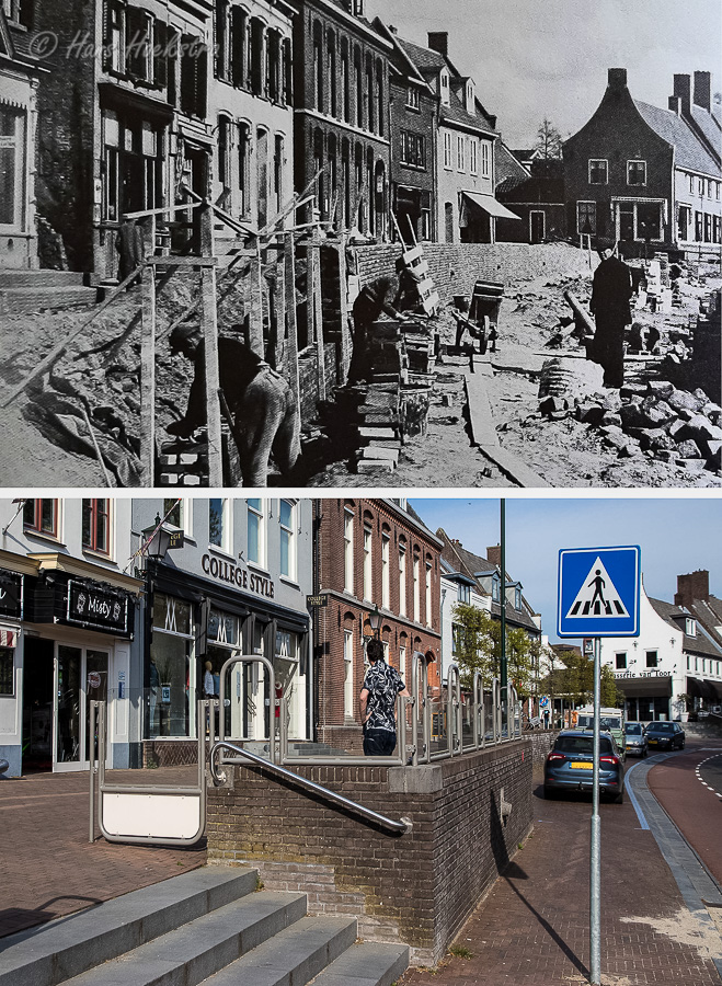 Hieronder een selectie van 10 foto’s in de “Toen & Nu” serie. De “Toen” foto’s zijn als referentie overgenomen uit het genoemde boek (met vermelding van het fotonummer), de “Nu” foto’s zijn eind april en begin mei gemaakt, zoveel mogelijk van dezelfde de plek als de “Toen” foto. Ik heb daarbij bewust gekozen om geen foto’s van de beeldbepalende Cuneratoren op te nemen, maar juist van andere locaties op straatniveau.