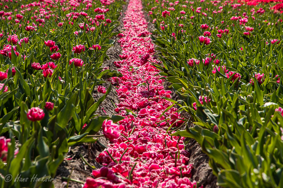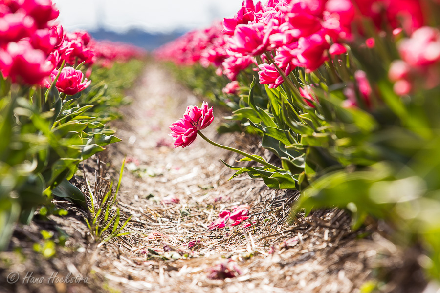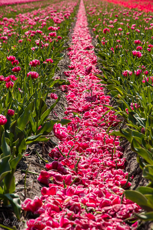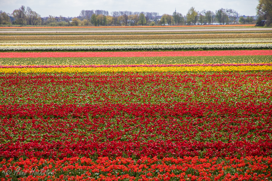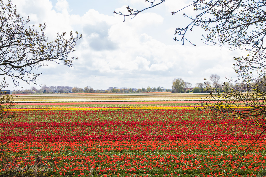 Op 1 mei ben ik voor het eerst in mijn leven (!) bij de tulpenvelden rondom Lisse geweest. Hoewel er geen internationale toeristen waren, waren op deze zaterdagmiddag meer mensen op dit idee gekomen. Bij de gebruikelijke ‘hotspots’ was het dan ook best druk, maar na een rondje rijden zagen we een mooi rustig veldje. Nadat we in alle rust de foto’s gemaakt hadden, hebben we, als ‘bedankje’ aan de boer, uiteraard een bosje tulpen bij zijn kraampje gekocht.