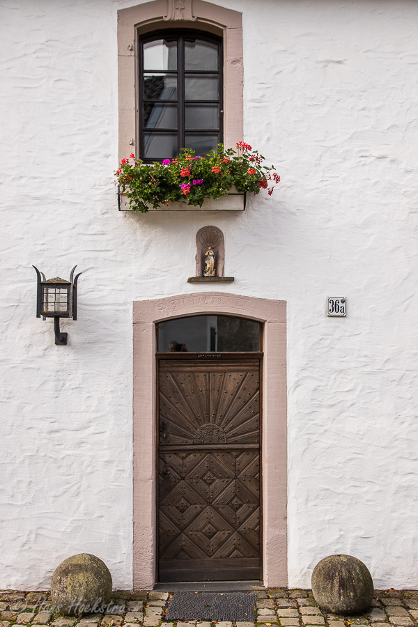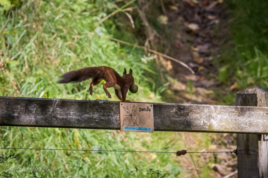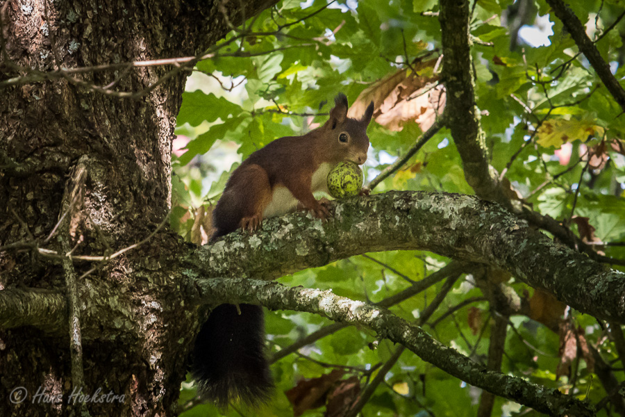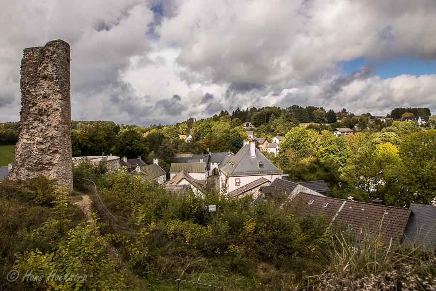 Het vakantiepark waar wij verbleven, ligt naast het oude stadje Kronenburg. Op een heuvel ligt een ruïne van een burcht en er omheen is het oude dorpscentrum met mooie oude huizen. En toen we het dorp verlieten om naar Monschau te rijden, zagen we een eekhoorn met een walnoot.