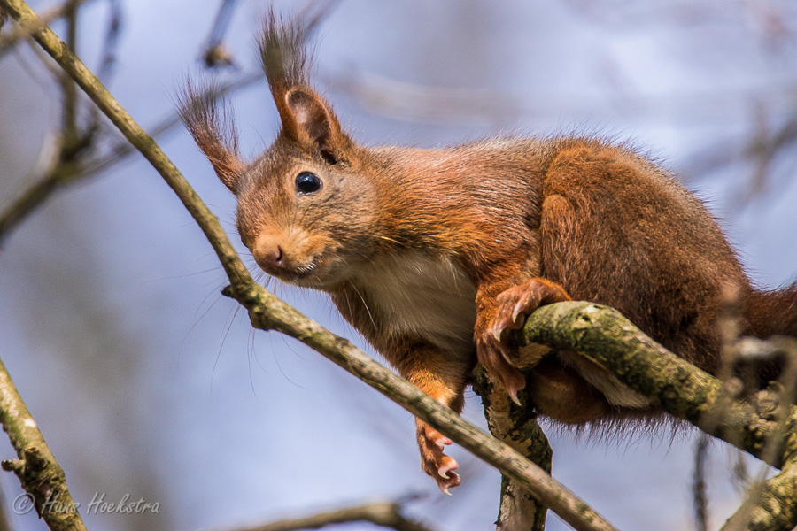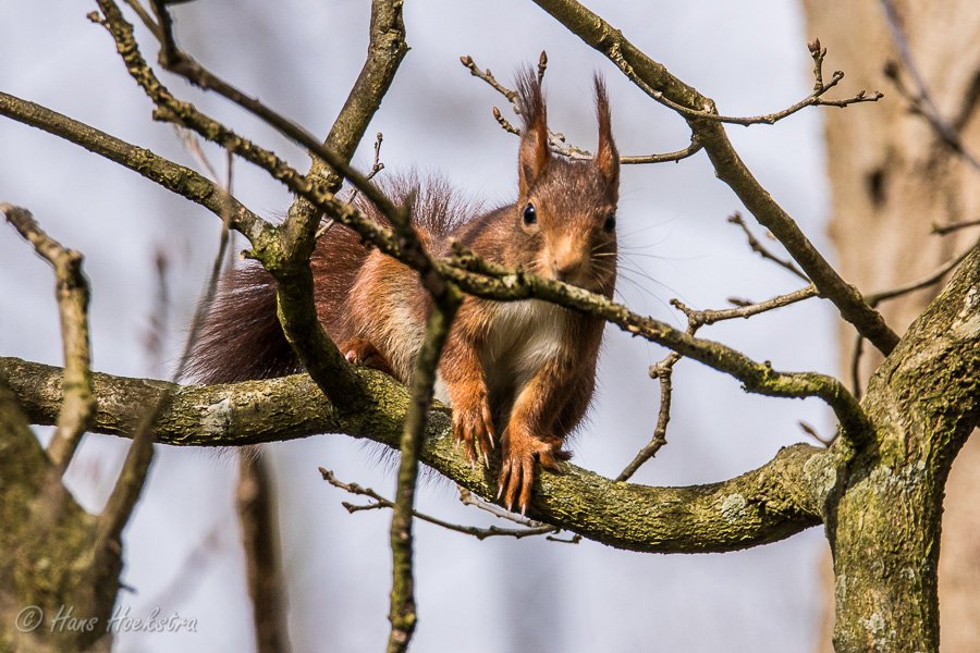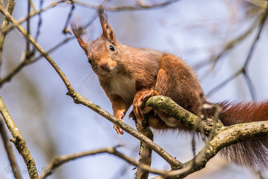 Tijdens een lunchwandeling langs de bosrand zagen we opeens 3 eekhoorntjes spelen. We zijn gauw terug naar huis gelopen, heb ik de camera gepakt en op de fiets terug. Gelukkig waren ze er nog en kon ik deze mooie plaatjes schieten. En dat was af en toe best lastig, want de beestjes hadden maar 2 standen; even stil zitten en daarna meteen weer vol gas rennen en springen.