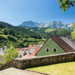 Eizenerz is een oud mijnstadje naast een open ijzerertsmijn. Het stadje heeft een leuk oud centrum met een mooie kerk op een heuvel en ligt ingeklemd tussen hoge bergen, de Pfaffenstein, de Kaiserschild en de Erzberg.